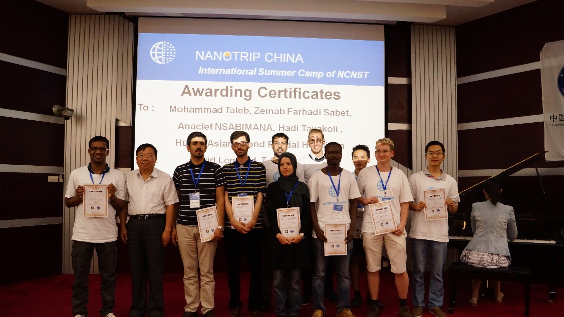 In the academic and cultural exchanges on September 6th, Professor Wang Chen from NCNST discussed the opportunities and challenges of nanoscience and technology. He briefly summarized the recent developments in nano materials, nanobiology and energy related areas. He called on the students to find environmentally friendly solutions to apply nanotechnology into our daily lives. Professor Dr. Hossein Ganjidoust from Iran highly praised Prof. Wang’s efforts in Sino-Iran cooperation of science and education. After that, the international students took turns to introduce their studies and the culture of their own countries. During the summer camp, the students got a deeper understanding of China. They not only learned Chinese culture, but also harvested with experience and friendship from all over the world. Professor Liu Minghua, director of NCNST congratulated the students on their performance during the summer camp. In his summary speech, he encouraged the cooperation and friendship beyond nations and cultural difference. He then awarded the excellent students with certificates from UCAS and NCNST.